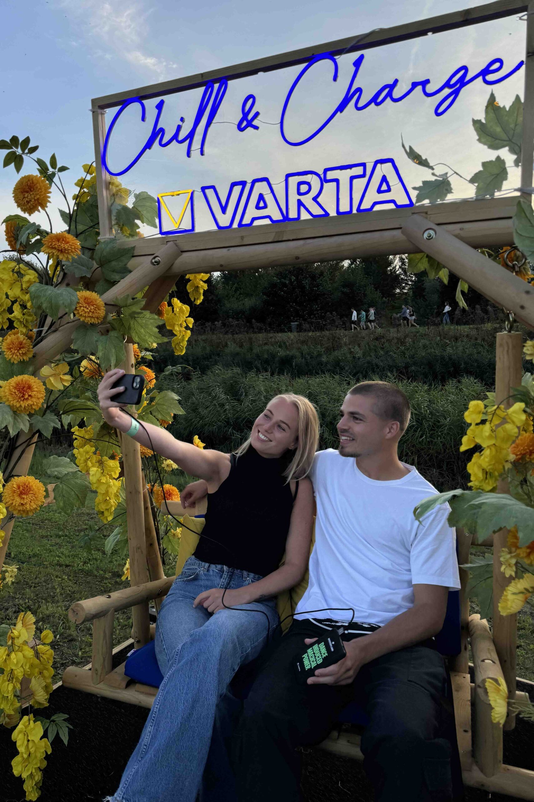 In 2023, Mysteryland, celebrating its 30th anniversary, collaborated with VARTA to introduce the “Chill & Charge” initiative. VARTA participated in Mysteryland as part of a sustainability-focused partnership aimed at enhancing the festival experience while promoting eco-friendly practices. Now, in 2025 we added Swing & Charge at the festival site to enhance Mysteryland’s costumer brand experience and charging smartphones at the same time for free. This brand partnership, initiatited by 10WAVES provided festival-goers with dedicated areas on the camping grounds where they could relax and recharge their mobile devices using power stations powered by sustainable generators. Additionally, attendees had the option to rent pre-charged VARTA powerbanks for on-the-go charging, ensuring they stayed connected throughout the event
